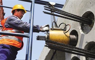 點此關心微信公眾號:市政工程路橋區秘笈。安裝好限位開關板之后,吊裝專用型液壓千斤頂。液壓千斤頂務必選用鍍鋅鋼絲繩吊裝以保證安全。吊裝以后,安裝好專用工具錨、專用工具夾片。專用工具夾片的安裝務必合乎《公路橋涵施工技術規范》(JTG/TF50-2011)有關規定。專用工具夾片未起功效或未徹底起功效都是造成 最后伸展量偏差偏大。隨后連接張拉儀與液壓千斤頂的手機充電線,張拉一孔結束,不可牽扯該手機充電線用以挪動液壓千斤頂。以便使鋼鉸線承受力勻稱,理應選用梳編穿束加工工藝,接下去安裝好儀器設備無線天線。